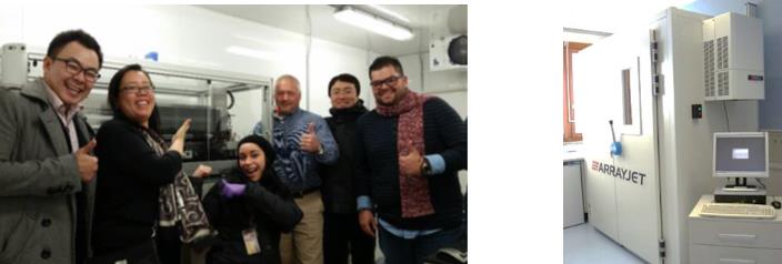 通過(guò)方法學(xué)的成功轉(zhuǎn)移,CDI 公司目前能生產(chǎn)全球最大的人類蛋白組芯片,一個(gè)批次能生產(chǎn)100張3.1 版本的HuProt 芯片。采購(gòu)Ultra Marathon II飛行噴墨式點(diǎn)樣平臺(tái)讓CDI能夠制備蛋白組芯片和其他客戶定制的芯片。通過(guò)這些芯片,客戶能使用最小量的臨床樣品進(jìn)行上萬(wàn)種蛋白的分子相互作用檢測(cè)。Arrayjet Advance芯片服務(wù)和非接觸壓電式點(diǎn)樣技術(shù)顯著的提高大規(guī)模、高質(zhì)量的蛋白芯片生產(chǎn)效率。環(huán)境控制單元不僅僅保證了完美的樣品點(diǎn)形態(tài)和矩陣,同時(shí)保護(hù)了蛋白的天然構(gòu)象,最終證保實(shí)驗(yàn)結(jié)果的一致性。
