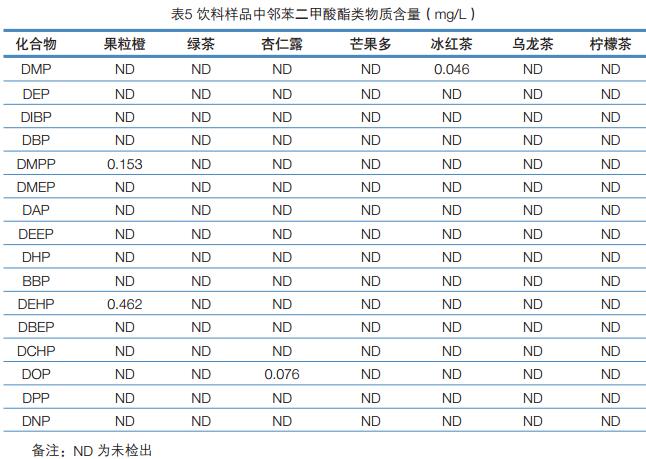 對市售7個塑料瓶裝飲料樣品中鄰苯二甲酸酯類物質(zhì)的測定