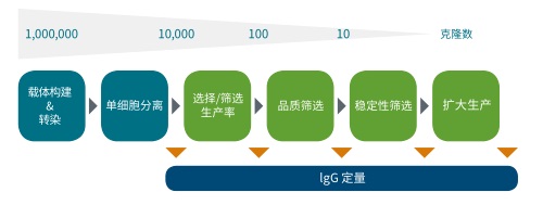 圖 1 從細(xì)胞轉(zhuǎn)染到擴(kuò)大生產(chǎn)的細(xì)胞系開發(fā)過程