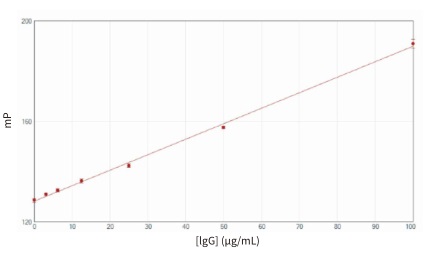 ValitaTITER 實(shí)驗(yàn)基于對 IgG Fc 片段與蛋白 G 的相互作用采用熒光偏振 ( FP )技術(shù)檢測。96 孔微滴度板的每個孔中都包被有熒光標(biāo)記的 IgG 結(jié)合多肽,蛋白 G。當(dāng)加入樣品到孔板中時,蛋白G 分子被重懸并發(fā)生結(jié)合。一旦結(jié)合抗體,蛋白 G 分子的運(yùn)動速率便會下降,導(dǎo)致熒光偏振 ( FP ) 值的增加 ( 圖 2)。