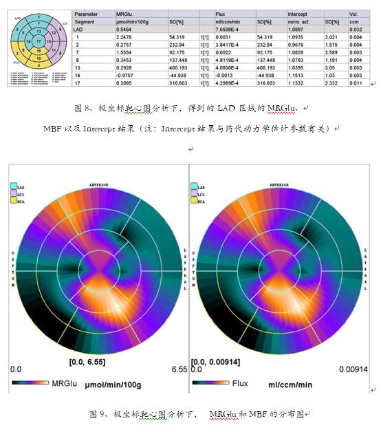 極坐標(biāo)靶心圖法在PET動(dòng)態(tài)心肌血流(MBF)、心肌葡萄糖代謝率(MTGlu)等參數(shù)的定量分析上有很大的價(jià)值。通過(guò)Super Nova PET/CT選配的PMOD軟件可實(shí)現(xiàn)極坐標(biāo)靶心圖的獲取和分析。