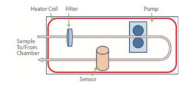 ✘旁路傳感器設(shè)計(jì),將傳感器放在培養(yǎng)箱內(nèi)腔外,通過(guò)額外的設(shè)備,包括一個(gè)過(guò)濾器,管道,泵,和一個(gè)單獨(dú)的加熱器?諝獾男颖,行駛距離和不同的環(huán)境意味著條件與室內(nèi)細(xì)胞的體驗(yàn)不相匹配。