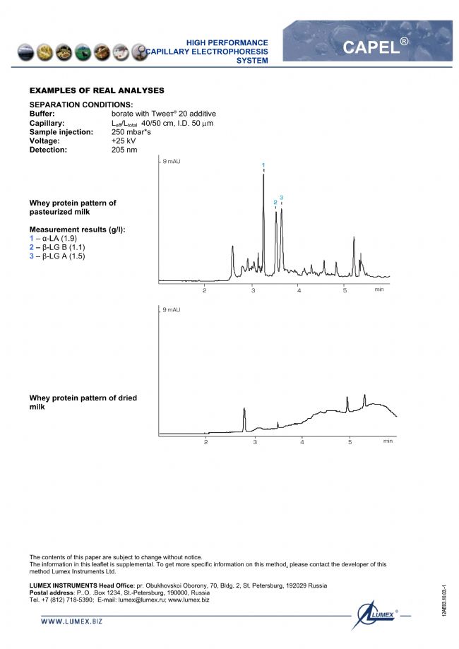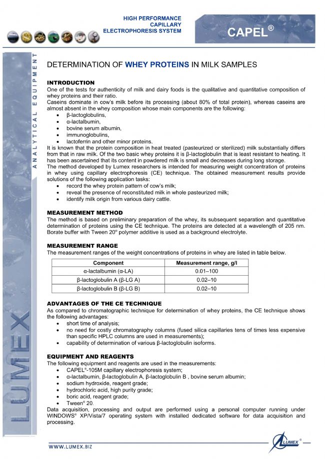 牛奶中乳清蛋白的測定-LUMEX毛細(xì)管電泳法