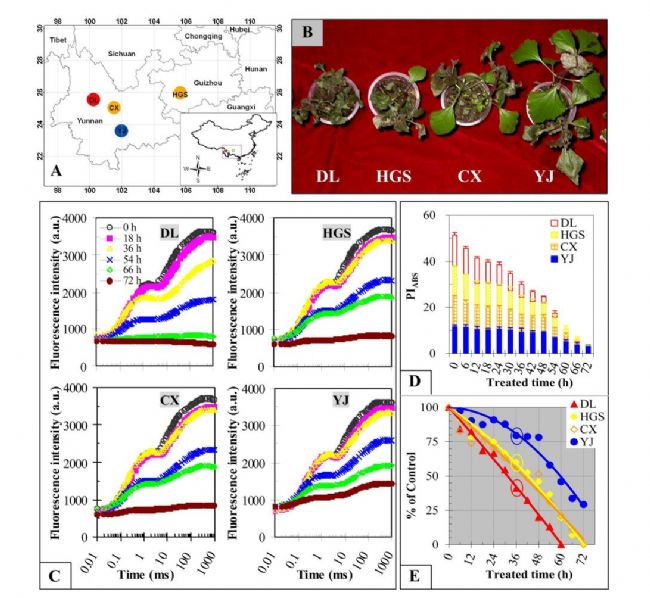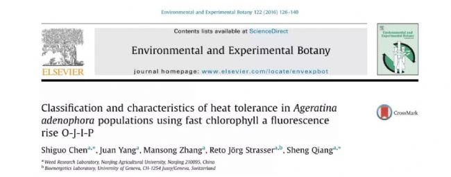 Qiang S , Chen S , Ret o Jörg Strasser, et al. Classification andcharacteristics of heat tolerance in Ageratina adenophora populations usingfast chlorophyll a fluorescence rise O-J-I-P[J]. Environmental &Experimental Botany, 2016, 122:126-140.