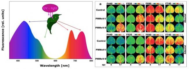 多光譜熒光成像是在FluorCam葉綠素熒光成像技術基礎上,采用UV紫外光(320nm -400nm)激發(fā)多光譜熒光成像技術,既可用于葉綠素熒光動態(tài)成像分析,還可對F440、F520、F690、F740四個波段的植物熒光成像分析,成為近幾年來植物病害檢測研究最受追捧的技術。