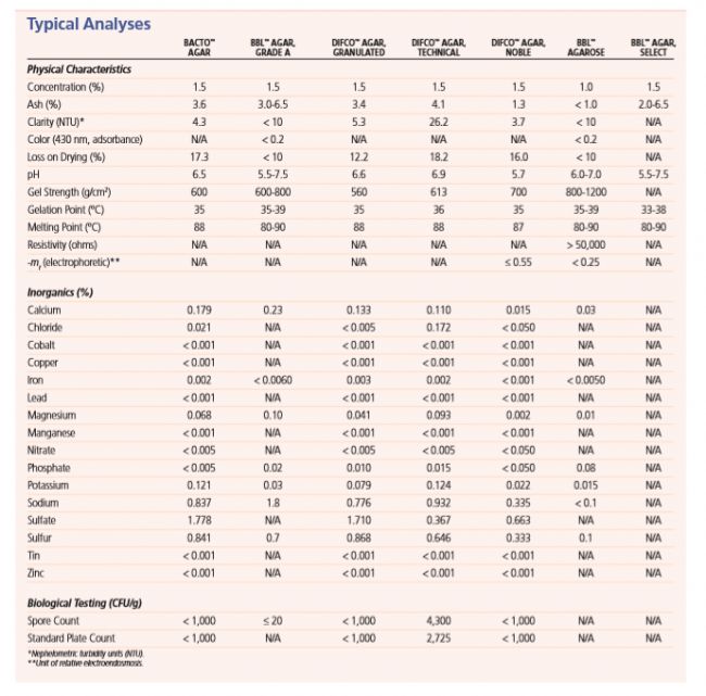 Bacto Agar針對有益的鈣和鎂進行了優(yōu)化內(nèi)容。有害離子如鐵和銅降低。