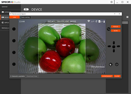 Ø 經(jīng)由WiFi或USB連接,您可以通過計算機(安裝IQ Studio)遙控IQ高光譜成像