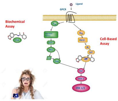 小分子藥物研發(fā)中,篩選能有效結(jié)合目標(biāo)蛋白的分子是非常耗時(shí)耗(財(cái))力的一個(gè)環(huán)節(jié),但又是必須進(jìn)行的工作。高失敗率源于結(jié)合情況的錯(cuò)綜復(fù)雜,體外生化實(shí)驗(yàn)的結(jié)合效果,往往不能很好的在細(xì)胞水平進(jìn)行重現(xiàn)。這其中可能是因?yàn)榉肿釉诖┰郊?xì)胞膜時(shí),出現(xiàn)了被修飾;也可能是因?yàn)榧兓鞍缀驼鎸?shí)細(xì)胞環(huán)境的蛋白構(gòu)象不同。例如,在生化水平顯示很好結(jié)合效果的分子,在細(xì)胞水平可能結(jié)合的是另一個(gè)蛋白。是不是很崩潰……