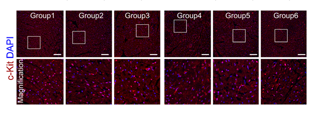 Fig.2 Immunostaining for c-Kit on heart sections show its expression in tissues ofall groups (12–16W).