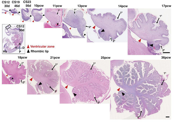 Haldipur和Millen以及一組國際研究人員觀察了人類在受孕后30天到出生后9個月之間小腦的發(fā)育情況,并將其與經(jīng)常用于大腦研究的小鼠和獼猴進行了比較。通過檢查和比較這些發(fā)育中的大腦的形態(tài)和分子表達,研究人員在人類身上發(fā)現(xiàn)了一些獨一無二的祖細胞,而人們并未在小鼠或是獼猴的大腦區(qū)域中發(fā)現(xiàn)這些細胞。