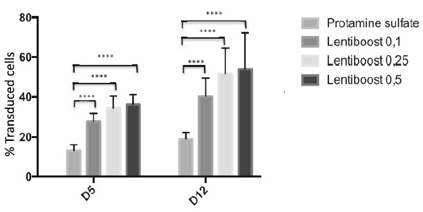 • 增強(qiáng)慢病毒轉(zhuǎn)導(dǎo)效率,高達(dá)90%——提高治療蛋白表達(dá)量,有利于取得臨床試驗(yàn)成功。