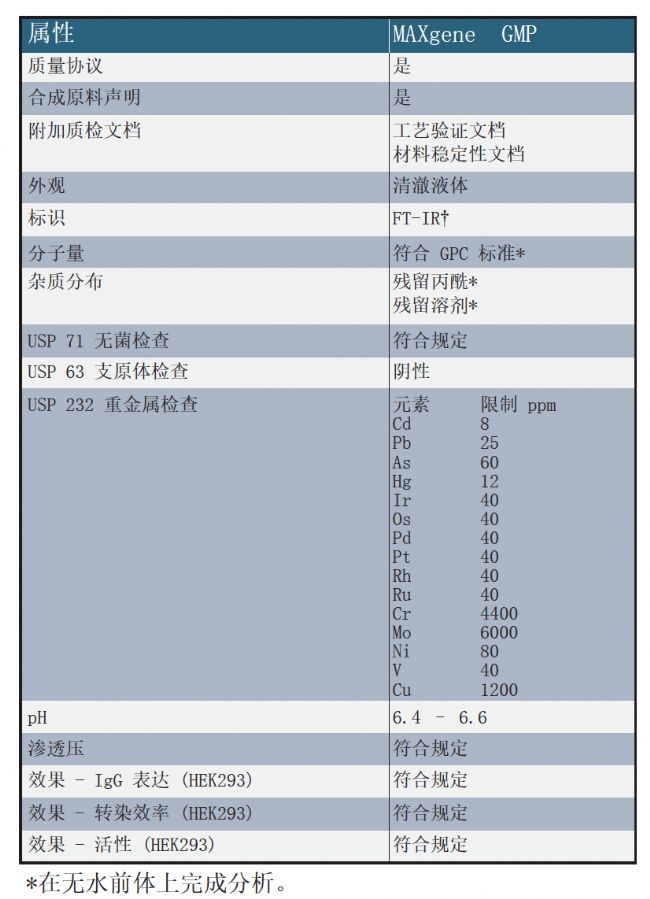 MAXgene GMP專門針對(duì)臨床病毒載體開發(fā)和制造而設(shè)計(jì)。MAXgene GMP既保留了Polysciences線性PEI的轉(zhuǎn)染效率和量產(chǎn)能力,同時(shí)也具備臨床制造所需的工藝驗(yàn)證和監(jiān)管程序。目前可提供1L防篡改容器封裝劑量。