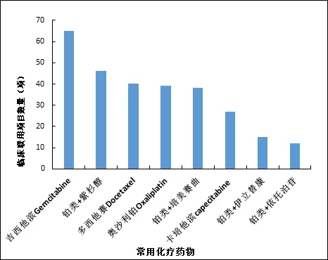 PD-1抑制劑與部分常用化療藥物聯(lián)用臨床項目不完全統(tǒng)計圖