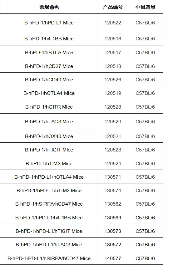 百奧賽圖PD-1相關(guān)多靶點(diǎn)人源化小鼠列表: