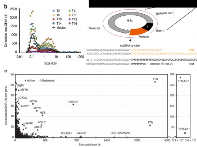 環(huán)狀DNA測(cè)序和RNA測(cè)序(云序生物提供此服務(wù)),確定eccDNA在樣本的分布情況,并且通過(guò)DNA和RNA的聯(lián)合分析,探索eccDNA與RNA表達(dá)之間的關(guān)系。如果想短平快的發(fā)表5-10分的文章,那么eccDNA表達(dá)譜分析顯得再合適不過(guò)了。下面這篇文章探索了eccDNA在肌肉組織和血液樣本中的分布情況。小編帶領(lǐng)大家一起解讀這篇高達(dá)11分的eccDNA表達(dá)譜文章。