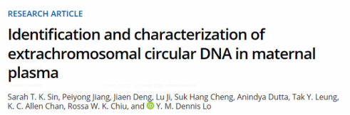 8. Sin Sarah T K,Jiang Peiyong,Deng Jiaen et al. Identification and characterization of extrachromosomal circular DNA in maternal plasma.[J] .Proc. Natl. Acad. Sci. U.S.A., 2020, 117: 1658-1665.