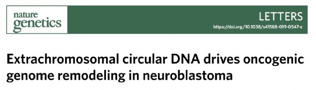 2019年12月16日,eccDNA驅(qū)動(dòng)致癌基因重構(gòu)一文發(fā)表在Nature Genetics(IF=25.455)期刊上,該文章檢測(cè)神經(jīng)母細(xì)胞瘤中eccDNA,不僅發(fā)現(xiàn)了多種未被發(fā)現(xiàn)過(guò)的eccDNA,還發(fā)現(xiàn)eccDNA是體細(xì)胞基因組重排的主要來(lái)源。研究揭示了eccDNA通過(guò)嵌合環(huán)化和重新整合到線性基因組中的方式,導(dǎo)致
