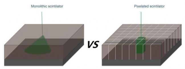 圖 2.Molecubes 的 PET 連續(xù)型單晶技術(shù) vs 像素化多晶技術(shù)。