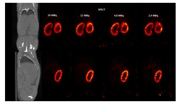 圖 7. 不同放射性劑量的 SPECT 圖像對比, 可以低劑量成像【1】 。