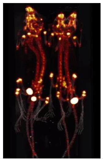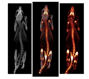 圖 10. 大鼠骨骼的 PET/CT 成像(10.29MBq(283µCi) [18F]NaF, 采集時(shí)間: 45min) 。