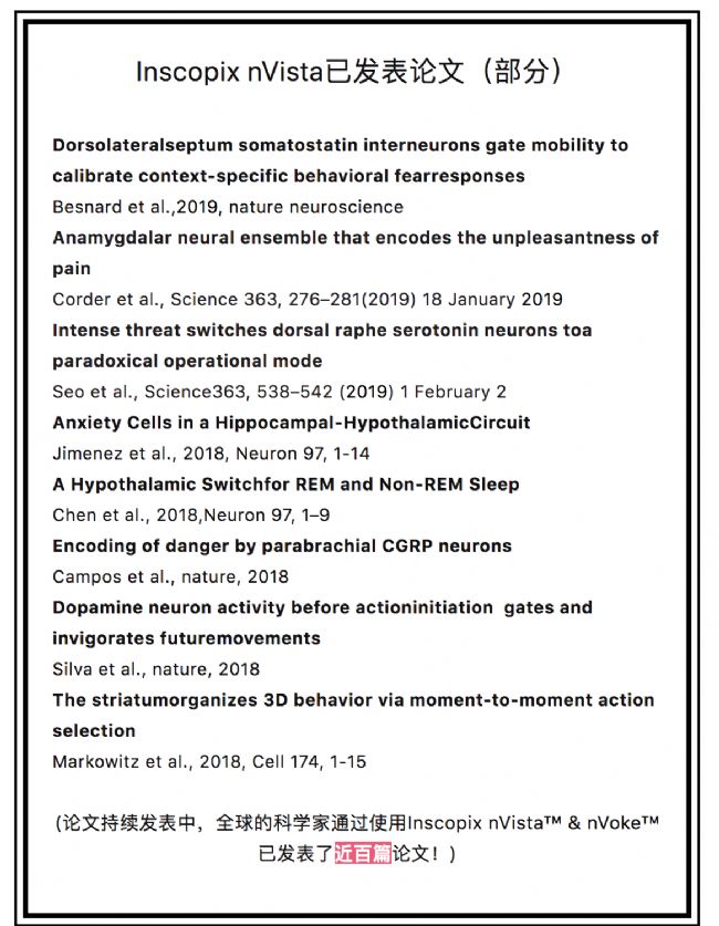nVoke™,從以前不可能想象的方式,第一次成功觀察到了GABAergic神經元在卒倒過程的實時興奮動態(tài),甚至對每一個細胞的時間行為進行了追蹤,為后續(xù)科學家進一步探索生理病理機制提供了敲門磚,讓人不得不感嘆科技進步的強大力量,好的工具真的能讓人事半功倍!