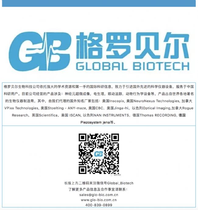 特別聲明:格羅貝爾生物科技公司(美國Global Bietech Inc)是Inscopix進入中國后于2017年首次授權的中國代理商,擁有幾十家國際國內一流科研水平的實驗室用戶服務經驗。始終如一高水平售后技術服務是您完成此項實驗的根本保障,請在購買前與我們做更深入的技術咨詢和交流!