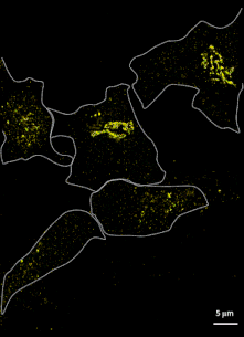 這些超分辨率圖像表明埃博拉病毒樣顆粒對(duì)肌動(dòng)蛋白及細(xì)胞骨架的影響。病毒顆粒與被破壞的肌動(dòng)蛋白網(wǎng)絡(luò)共同定位。這揭示了埃博拉病毒究竟是如何在宿主中復(fù)制的,為研究人員提供了可能的治療靶點(diǎn)。這些數(shù)據(jù)是與馬爾堡菲利普大學(xué)著名病毒學(xué)家Stephan Becker教授的合作研究得到的。
