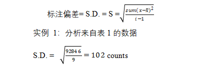 那么,這些值可如何用于核計(jì)數(shù)中呢?根據(jù)基本統(tǒng)計(jì)方法,我們知道預(yù)期的標(biāo)準(zhǔn)偏差等于總計(jì)數(shù)數(shù)量的平方根。這是計(jì)數(shù)統(tǒng)計(jì)計(jì)算的主要公式。