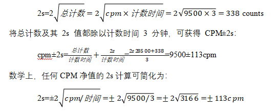 實(shí)例 5:計(jì)數(shù)率為 9500 CPM、計(jì)數(shù)時(shí)間為 3 分鐘的樣品的 %2s 計(jì)算。