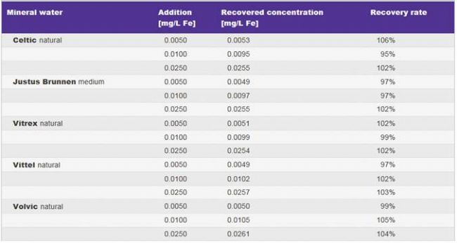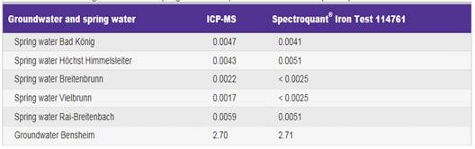 ®鐵測試盒 (Cat. No. 114761)的測試范圍:0.0025-5.00 mg/L Fe,這是一種簡單、快速、安全的分析測試方法,可作為ICP或AAS的替代方法,經(jīng)過大量的比對實驗,可應(yīng)用于生活飲用水、包裝飲用水、地下水中的鐵離子的分析和檢測。