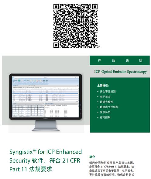 掃描下方二維碼即刻獲取《用于滿足 21 CFR Part 11法規(guī)要求的Syngistix for ICP Enhanced Security軟件》和《常見(jiàn)問(wèn)題問(wèn)答——遵循21 CFR Part 11法規(guī)的Syngistix for ICP Enhanced Security》等資料,得到滿意答復(fù)。