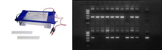 ▲瓊脂糖電泳儀及實(shí)驗(yàn)圖片