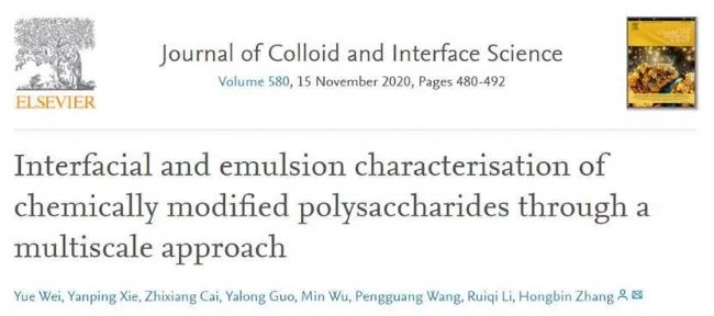 張洪斌教授課題組近日發(fā)表的題為《Interfacial and emulsion characterisation of chemically modified polysaccharides through a multiscale approach》的論文以玉米纖維膠酯(OSA-CFG)為模型乳化劑分子,從乳液結(jié)構(gòu)域多尺度的角度,采用界面流變學(xué)和耗散型石英晶體微天平(QCM-D)等宏觀微觀探測技術(shù),通過多尺度耦合分析,著重進(jìn)一步揭示了界面膜粘彈性與乳液穩(wěn)定性之間的關(guān)系,闡明了該類多糖乳化劑對植物油乳液的穩(wěn)定機(jī)理。