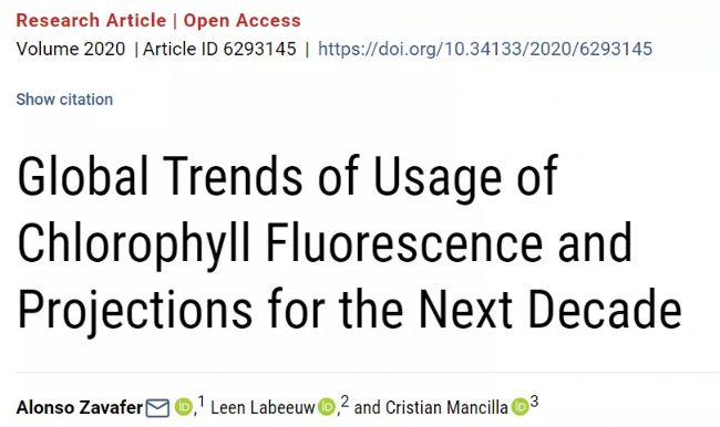 近日,Plant Phenomics在線發(fā)表了澳大利亞國立大學(xué)Alonso Zavafer等人題為Global Trends of Usage of Chlorophyll Fluorescence and Projections for the Next Decade的研究論文。