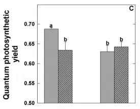 1) 抗旱品種篩選,定時(shí)測(cè)量植株的潛在最大光能利用效率(Fv/Fm)、光照條件下實(shí)際的光能利用效率(Y(II))。結(jié)果表明,抗旱品種的這兩個(gè)參數(shù)指標(biāo)都較高。