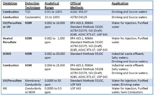 多年來,許多使用各種氧化技術(shù)的TOC分析儀已被不同的制造商介紹。這些不同的氧化技術(shù)發(fā)展起來是為了開發(fā)特定的細分市場。例如,UV或UV/過硫酸鹽氧化方法的使用被確定為最適合于制藥和生物技術(shù)行業(yè)。這主要是由于低的儀器背景和大樣品量,可以用于測試TOC含量。