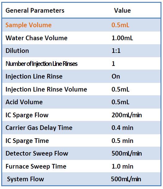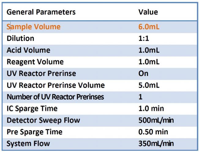 表2 Fusion TOC飲用水方法參數(shù)