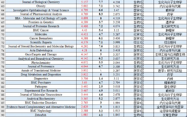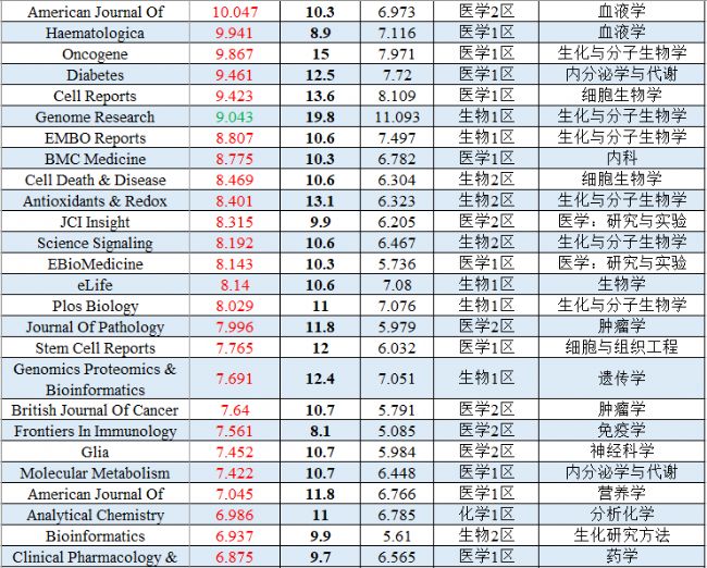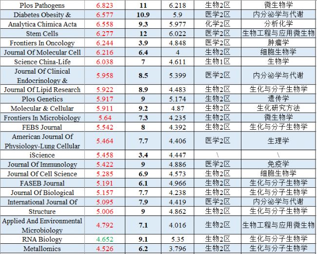 (因篇幅有限,僅列出部分生物/醫(yī)學(xué)類期刊)