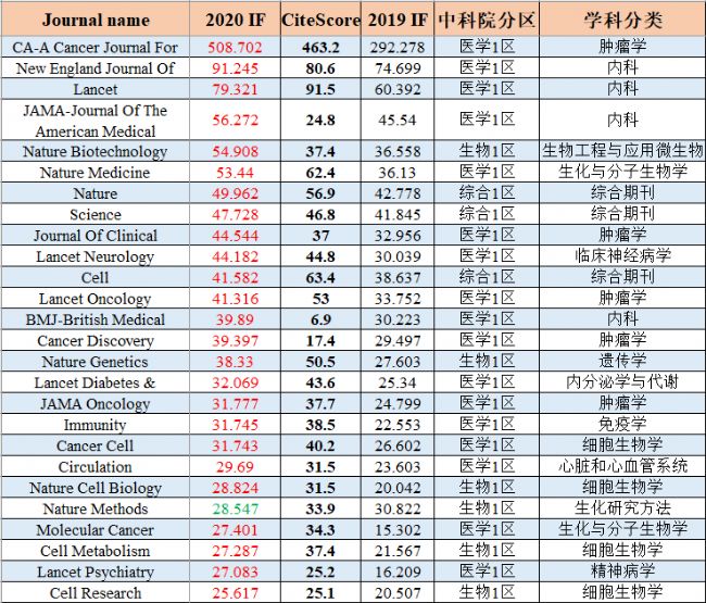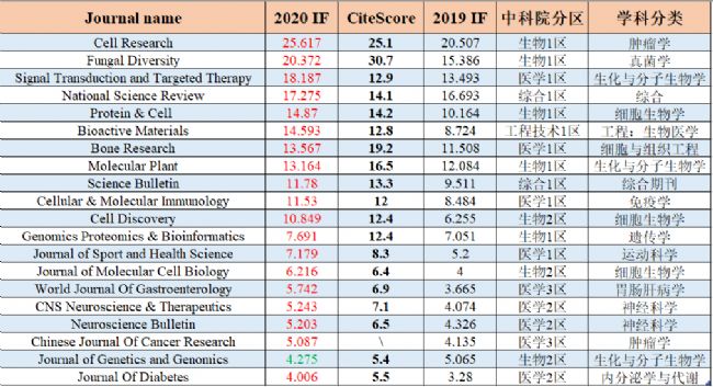 最后,繪譜君也為大家匯總了生物/醫(yī)學(xué)領(lǐng)域的140+篇熱門研究型期刊,既可以與去年的IF對比,同時也可以關(guān)注下另一個熱門指標(biāo)CiteScore。