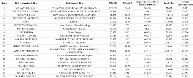 在選刊的時候可以綜合考慮這三種指標(biāo),繪譜君首先列出了生物/醫(yī)學(xué)領(lǐng)域Top20的期刊,大家不妨對比感受一下。
