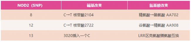 表2. NOD2基因的3個(gè)常見(jiàn)SNPs