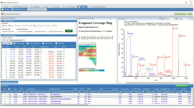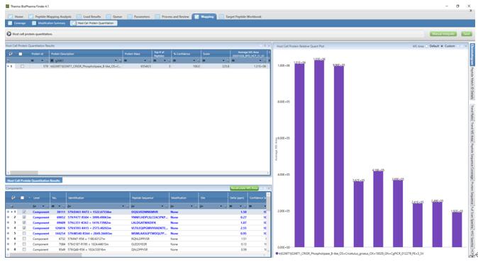Biopharma Finder 4.1單一軟件解決方案,可同時提供目標蛋白的肽圖分析結果及HCP的定性定量結果。