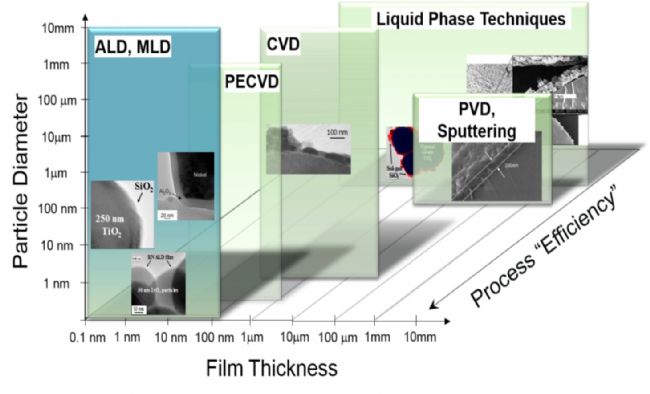 各類包覆技術(shù)對于涂層厚度控制以及適用的顆粒粒徑范圍