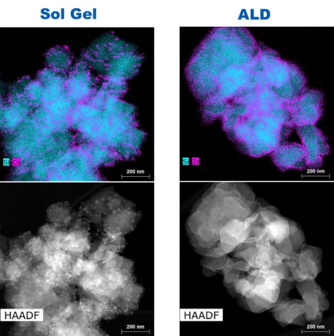 ALD 技術(shù)制備的薄膜更均勻(左:溶膠凝膠法;右:ALD)