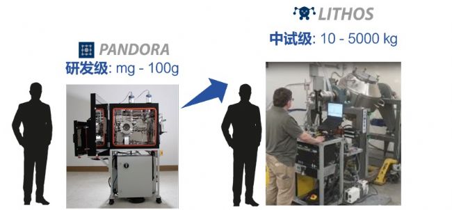 經(jīng)過 P 系列驗(yàn)證的工藝,可以通過與 Forge Nano 合作進(jìn)行放大生產(chǎn),最高可實(shí)現(xiàn)每日噸級的處理量。這一方式可以極大地減少粉末包覆的處理成本(<$1/kg,每日處理量噸級)。