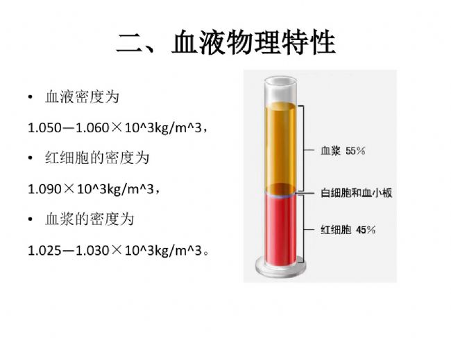 血液的成分:血液由有形成分和血漿所組成。其中有形成分(血細胞)占血液的45%,共有三類。血液離心機分離血液后得到以下成分: