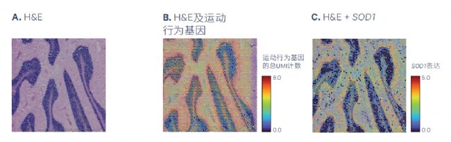 Visium空間基因表達(dá)玻片的核心是帶有空間條形碼、與mRNA結(jié)合的寡核苷酸。如需捕獲新鮮冷凍組織的基因表達(dá)信息,先處理樣品切片從組織中釋放出mRNA,使其與組織相應(yīng)位置附近的捕獲寡核苷酸相結(jié)合。在組織原位進(jìn)行逆轉(zhuǎn)錄,生成帶有空間條形碼并保留空間信息的cDNA文庫。如需捕獲福爾馬林固定石蠟包埋(FFPE)組織的基因表達(dá)信息,先對組織進(jìn)行透化處理,使其釋放出連接的探針對,與玻片上的捕獲探針相結(jié)合。延伸探針對,以生成帶有空間條形碼并保留空間信息的文庫。帶有條形碼的文庫可映射回捕獲區(qū)的特定數(shù)據(jù)點(diǎn)。隨后將這種基因表達(dá)數(shù)據(jù)與組織切片的高分辨率顯微鏡圖像相疊加,從而能夠以空間分辨的方式觀察組織形態(tài)背景下任一條mRNA或多條mRNA組合的表達(dá)。