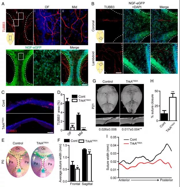 TrkA信號對于維持顱縫通暢至關重要:
