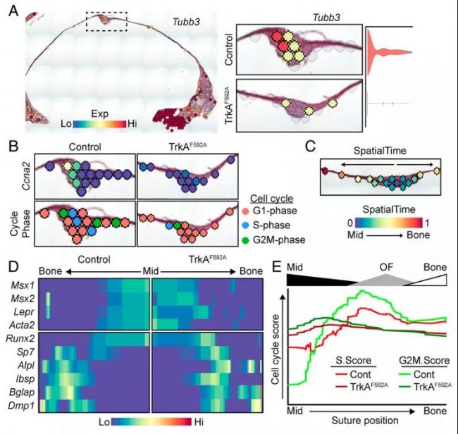 體內空間轉錄組學證實了TrkAF592A小鼠矢狀縫中增殖標志物的衰減: