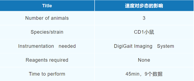 這個Protocol主要研究大/小鼠通過如何調(diào)整步態(tài)增加行走速度。研究人員將了解到即使是很小的速度變化對步態(tài)改變也有很大的影響。